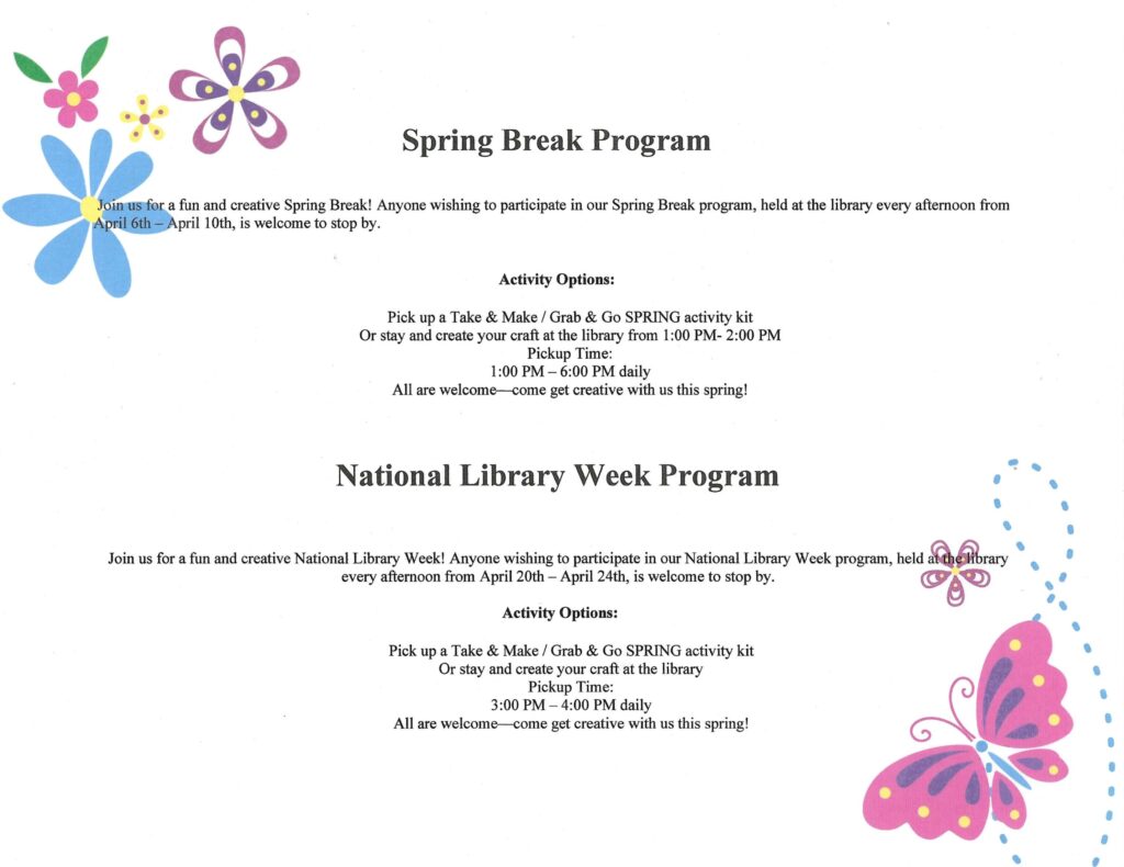 April O Addition: New Accessible electronic doors: Come in and see our new accessible automatic front doors that enhanced our library for our accessible patrons’ to ensure they can move freely and independently. They were installed on March 25, 2025 by Sahl’s Glass with a gracious and appreciative grant we received on February 14, 2024 from the American Library Association LTC’s Accessible Small & Rural Communities Round 2 of $10,000.00. We received this grant with the intent to install two automatic front doors to our existing American Disability Act compliant non automatic doors, repaint the accessible sign on the parking pavement and add an accessible sign with a metal pole in the ground. Thank you: Because the Village of Oriskany office and our Village Highway Department is so gracious, they will be repaving our parking lot, repainting the van accessible sign on the pavement and adding a new accessible sign with a metal pole in the ground! Thank you!